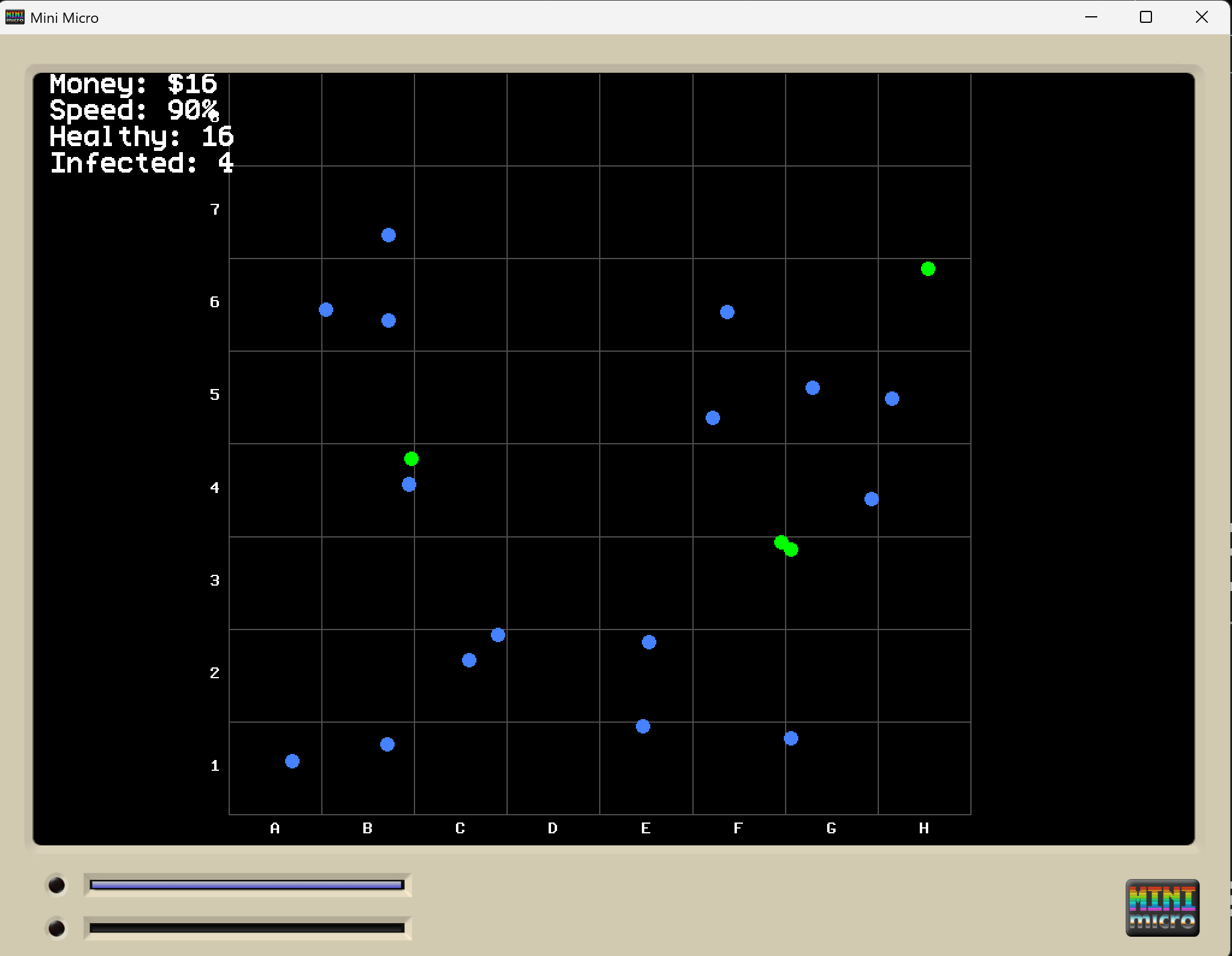 Green infected people will try to infect the blue healthy people!